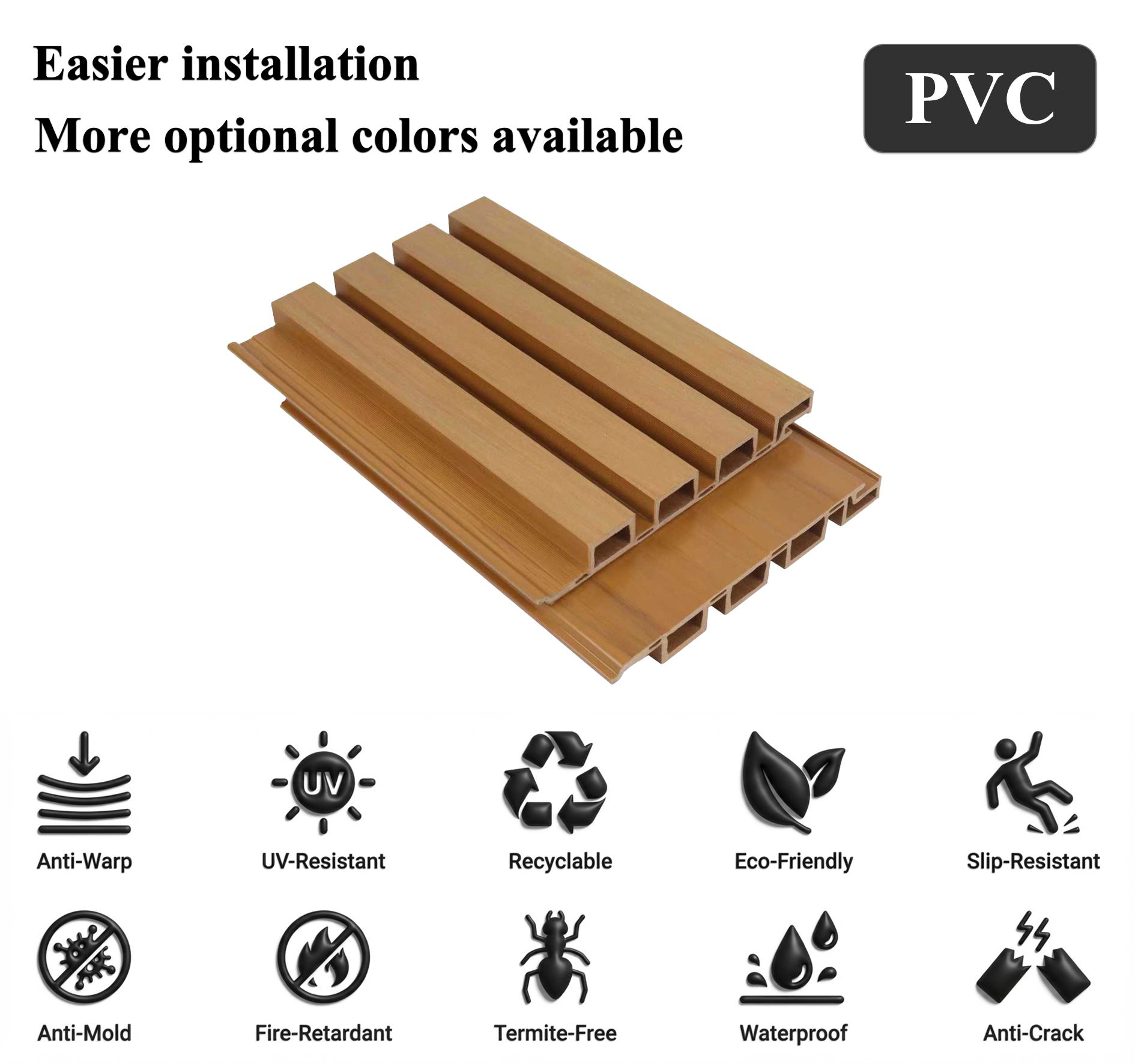 15-20daysFabricado con resina de PVC virgen de primera calidad, este revestimiento ranurado para exteriores ofrece una resistencia excepcional a la intemperie, protección UV e impermeabilidad. Sus ranuras de precisión realzan la estética, disimulan imperfecciones y facilitan la limpieza. Su diseño ligero y entrelazado permite una rápida instalación en superficies exteriores. No tóxico, resistente a la corrosión y a la decoloración, es ideal para fachadas comerciales y espacios exteriores de alto tráfico.